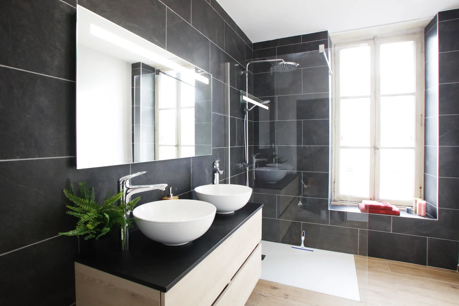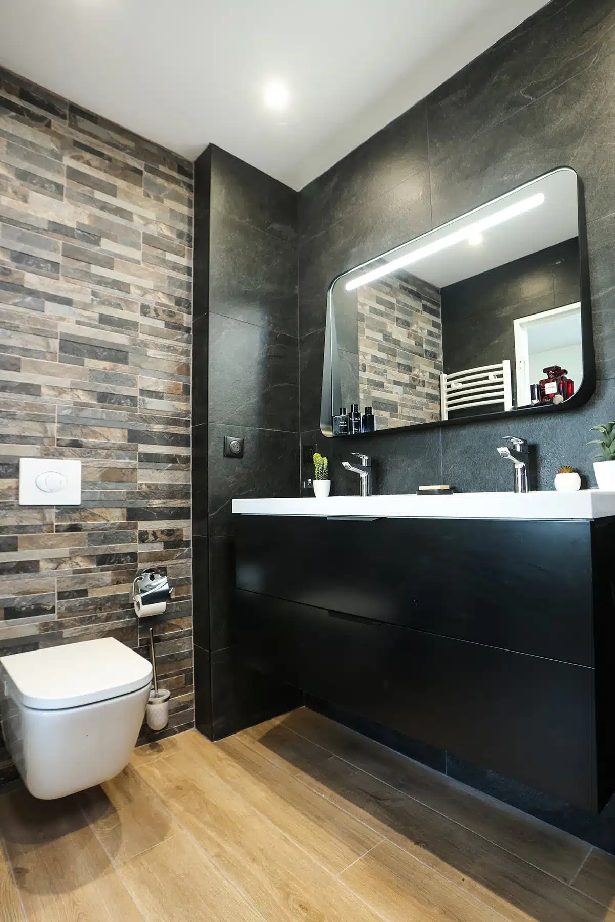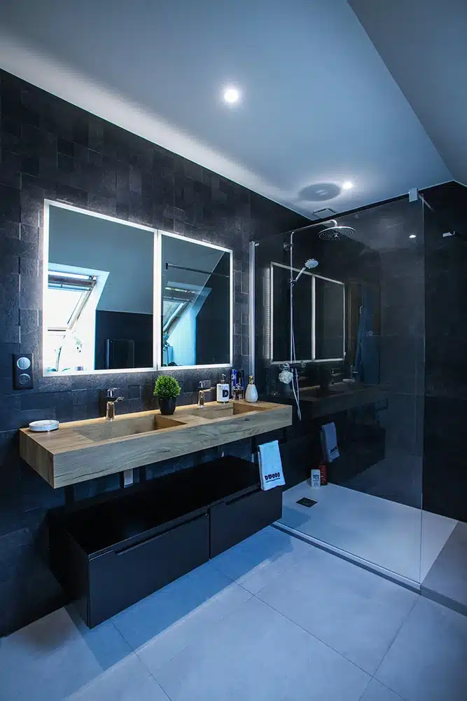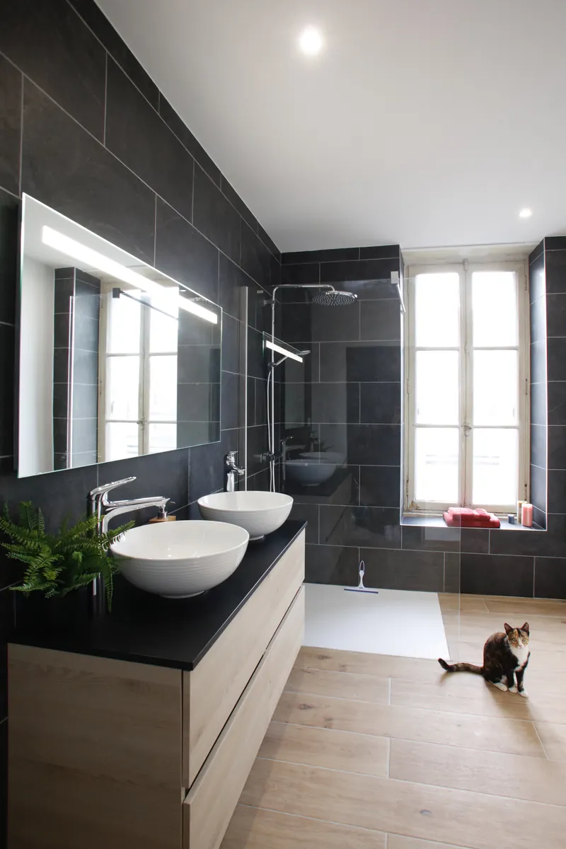 Noir Graphite incarne la sophistication des salles de bain noires. Avec son noir intense et ses finitions raffinées, cette collection de carrelage transforme chaque espace en un lieu design et contemporain. Les carreaux jouent subtilement avec la lumière, révélant des nuances et des reliefs qui apportent profondeur et caractère. Idéal pour les murs comme pour les sols, Noir Graphite associe modernité et élégance intemporelle, créant une atmosphère unique, chic et intimiste.